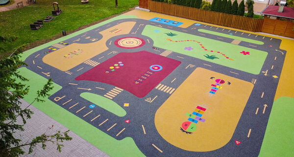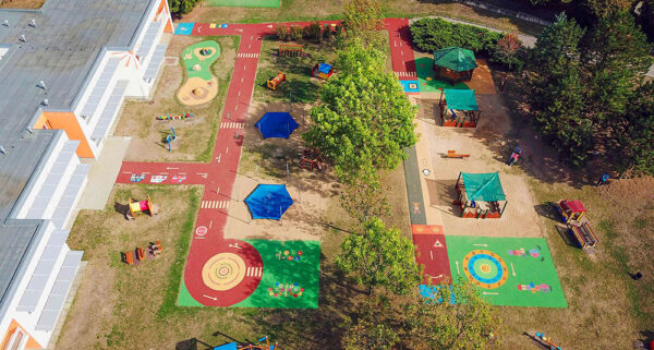 Des panneaux de signalisation, des feux tricolores, des passages piétons pour créer un espace de loisirs unique et sur-mesure pour l’apprentissage et l’exercice physique.
