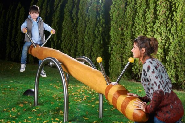 Le beau design en forme d’abeille invite les enfants à jouer de façon fantastique et ouvre des mondes de jeu complètement nouveaux. La combinaison extraordinaire de l’acier inoxydable et du bois de robinier convainc par sa longévité en extérieur.