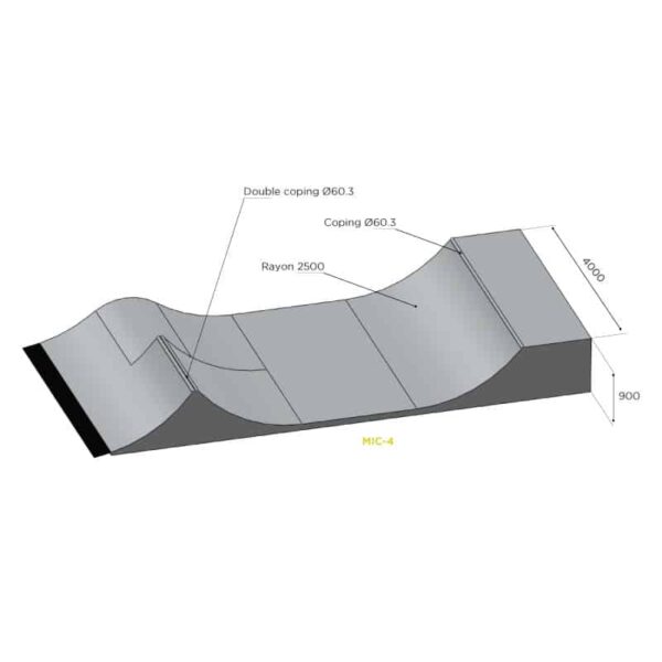La Micro-rampe 4 est pensée pour le plaisir de la glisse fluide, avec un rayon adapté aux jeunes riders. Conformité assurée NF EN 14974 / IN20.
