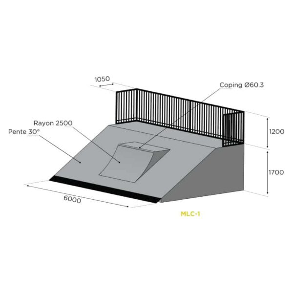 Pensé pour donner de l’élan, ce module de lancement offre une transition fluide et sécurisée pour les figures en hauteur. Idéal pour amorcer une ligne de tricks en skate, roller ou trottinette. Structure en acier galvanisé, inox et aluminium. Norme NF EN 14974 / IN33.