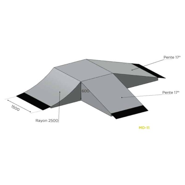 Module débutant 11 permet aux jeunes riders de gagner en assurance. Avec ses courbes progressives, il invite à expérimenter les premières figures en toute sécurité. Conforme NF EN 14974 / IN49.