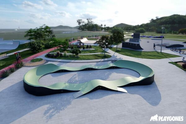 Accessible à tous, elle crée un espace de glisse ludique et structurant, propice aux premières mobilités. Parfaite pour une cour d’école, un square ou un petit parc familial.