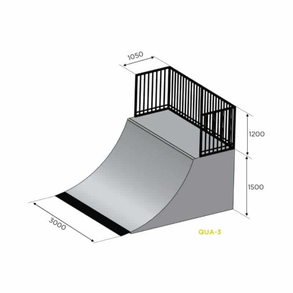 La version 3 du quarter propose une rampe plus verticale, pour booster les tricks verticaux et les transferts en hauteur. Fabriqué selon les standards NF EN 14974 / IN63.
