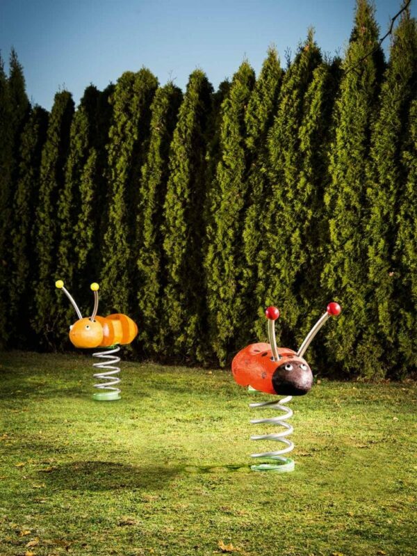 Avec son amie, la petite abeille, la coccinelle vole au-dessus de la prairie. Le corps robuste en bois de robinier offre aux jeunes enfants une prise en main sûre.