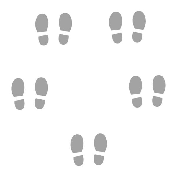 Un ensemble de 5 paires de chaussures gauche/droite pour créer des parcours moteurs éducatifs.