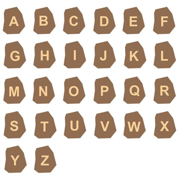 Un alphabet complet sur formes irrégulières, pour inventer des jeux d’apprentissage actifs.