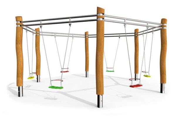 Se balancer entre amis est beaucoup plus amusant avec Seta robinier de Stilum, six enfants peuvent se balancer ensemble et organiser des concours de synchronisation. Construit en acier inoxydable, seta robinia est un extraordinaire élément de terrain de jeu pour les enfants jusqu’à trois ans.