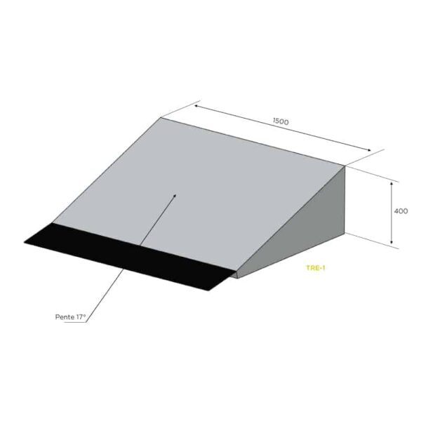 Ce module est dédié aux figures aériennes. Sa géométrie favorise la vitesse et l’amplitude des sauts. Idéal pour les zones avancées. Norme NF EN 14974 / IN80