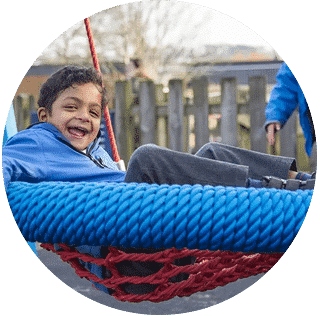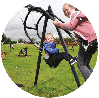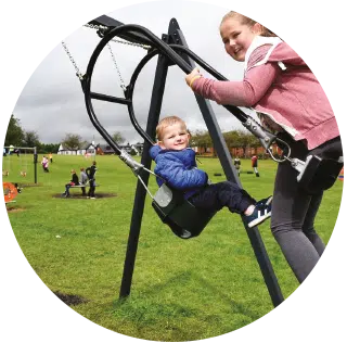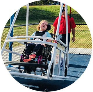 Un enfant en fauteuil roulant peut avoir le plaisir et la sensation de se balancer en toute sécurité.