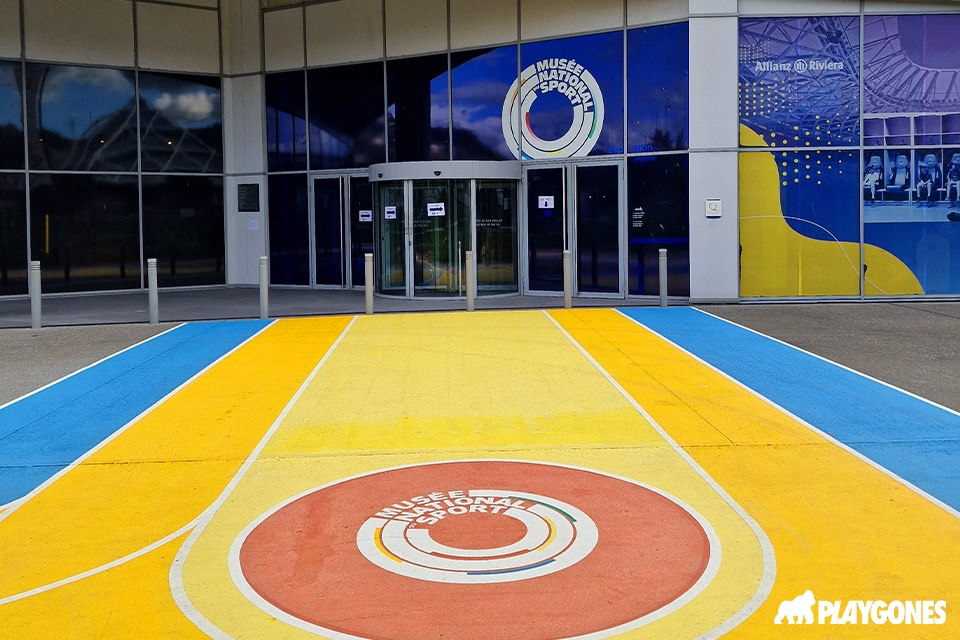 Enfin, ce design actif devant le Musée National du Sport de Nice sert de porte d’entrée vers un monde d’activité physique et d’exploration. Les couleurs vives et les motifs dynamiques attirent l’attention des passants, les incitant à s’approcher et à découvrir ce que le musée a à offrir.