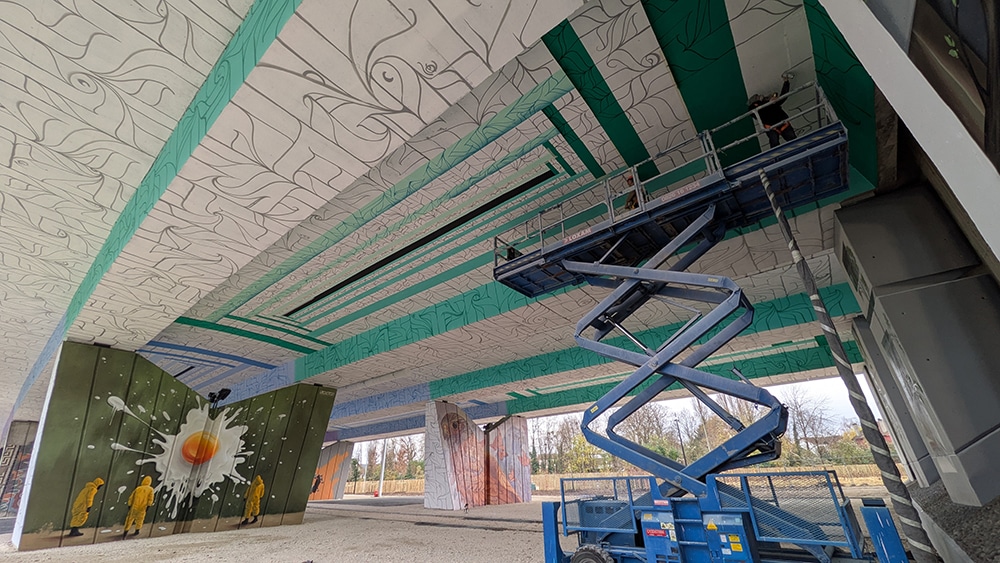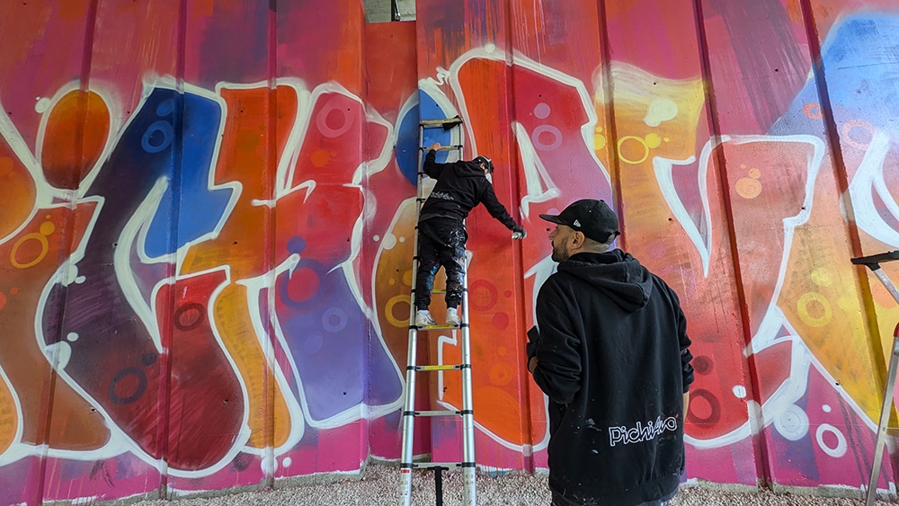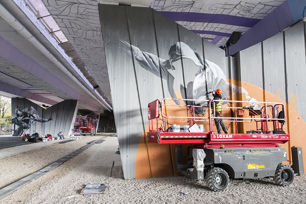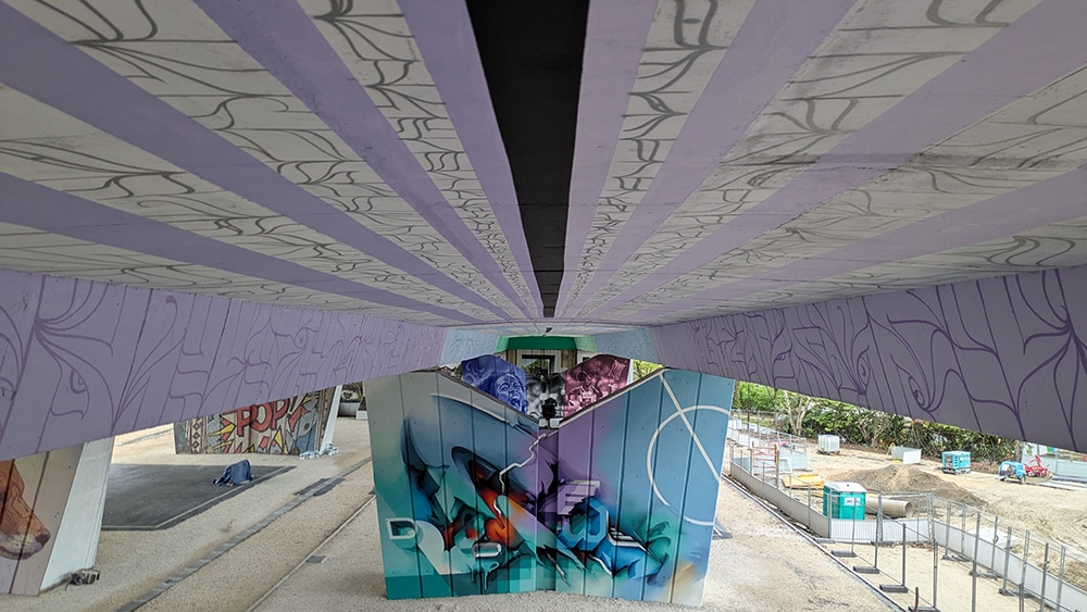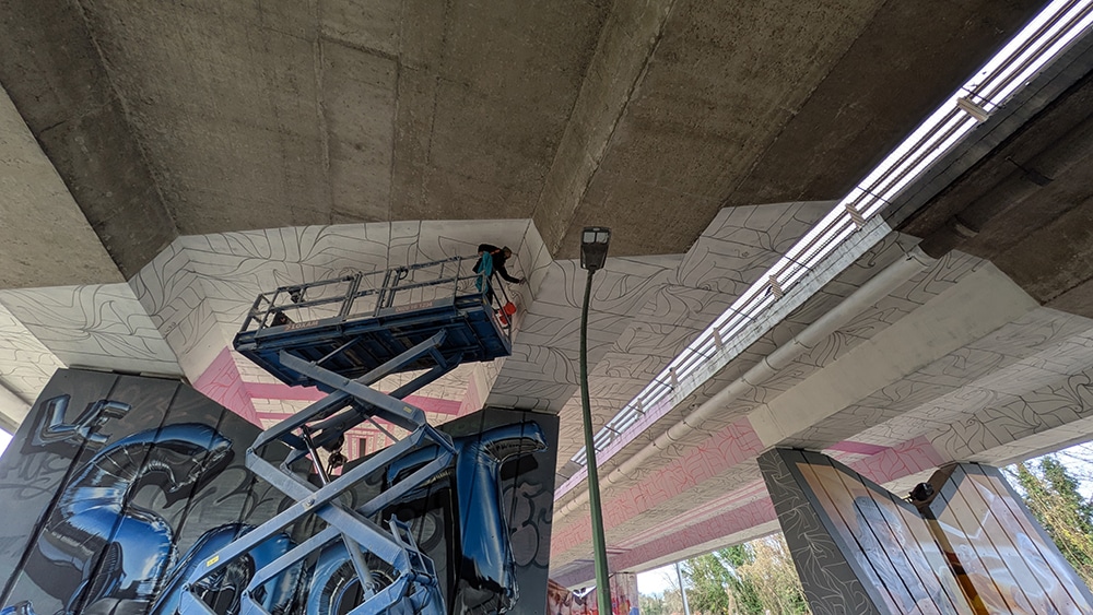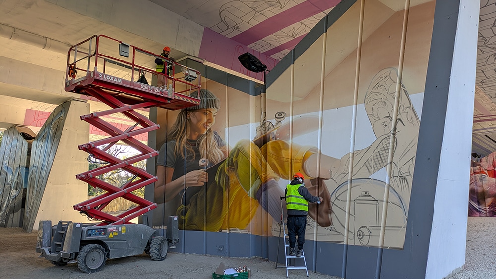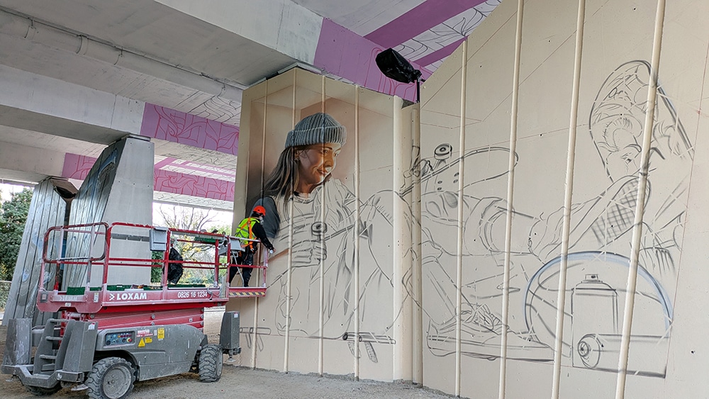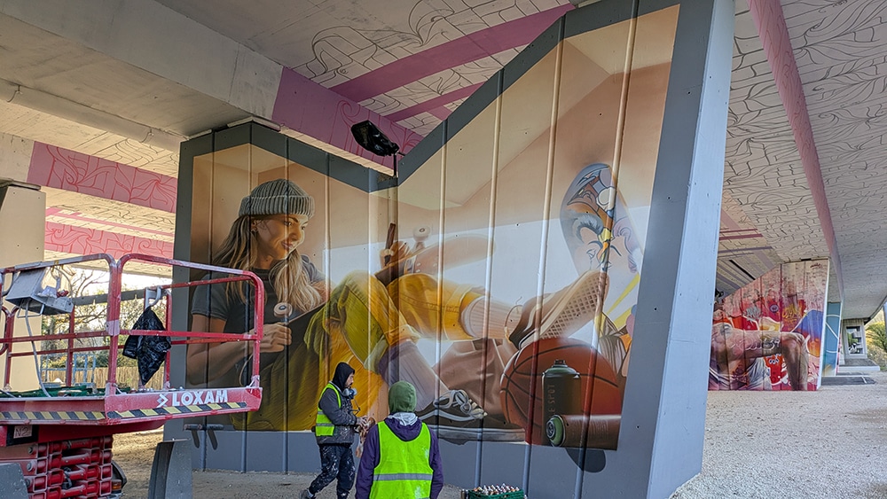 Chez Playgones, nous avons eu un véritable coup de cœur pour la sélection des artistes orchestrée par l’agence Notorious Brand, sur ce SPOT hors norme, mêlant l’art et le sport. Nous avons hâte de débuter la création des aménagement sportifs. En effet, le Spot sera un lieu iconique en Ile de France fusionnant l’art et les sports urbains en accès libre sous un pont de l’autoroute A4.
