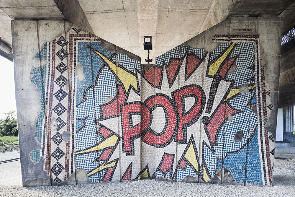 Refreshink, de son vrai nom Giovanni Magnoli, est un artiste italien né en 1971 à Arona. Il s’est d’abord passionné pour le graffiti dans les années 1990, développant un style distinctif qui fusionne des éléments naturels avec des formes géométriques et des lettrages. Récemment, Refreshink a orienté son travail vers l’esthétique de la mosaïque, antique ou byzantine, réinterprétée dans une tonalité pop.